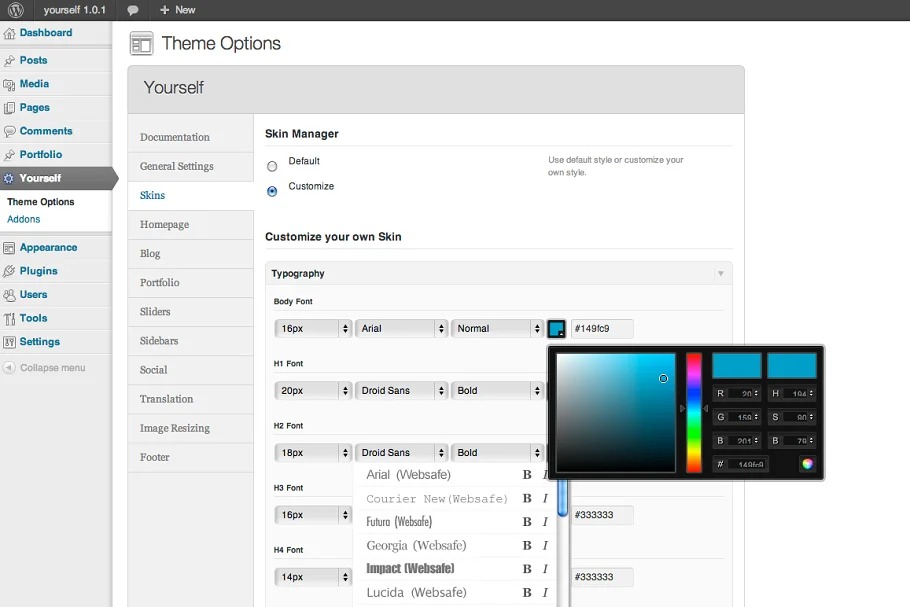 Yourself incorporates an assortment of custom gadgets to exploit your site’s prospects: Contact Form, Login Form, Twitter, Flickr, Tabs, Portfolio Slider, Recent Posts Slider, 300×250 and 125px Ads, Featured Post, Videos, Screenshots, Image and Video Lightbox.