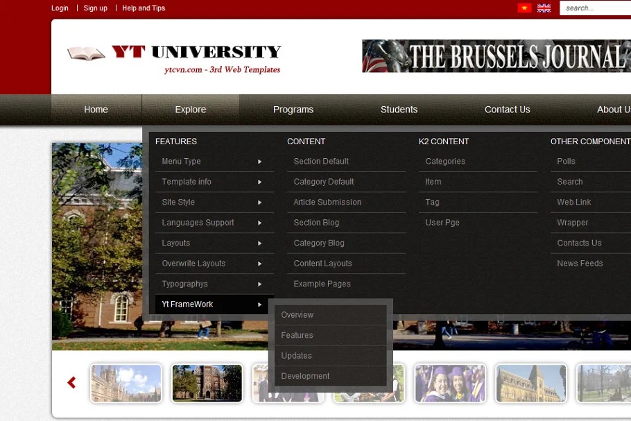 Yt University keeps on expanding on Yt Framework – Joomla Template Framework which are incorporated system of menus, google textual styles, text dimension and then some. Additionally, Yt Framework permits you to make limitless designs, to handily alter the layout as per your own particular manner. Yt Framework is straightforward, simple activity, regardless of whether you don’t have experience working with Joomla.