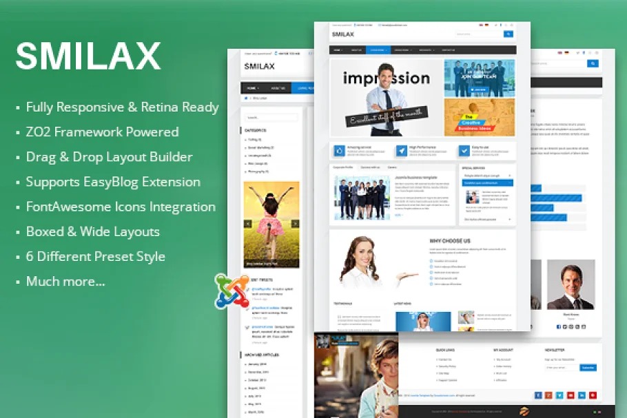 ZT Smilax’s design is fresh, perfect and corporate incredible for business site yet in addition will work for any corporate style site. The preset style highlight will permit you to change the whole shading plan of the site just by a single tick. Likewise, ZT Smilax has a custom landing page with a huge Layer Slider, astonishing custom HTML modules, Drop-down Mega Menu, EasyBlog augmentation and much more.